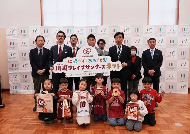 川崎ブレイブサンダースでは、地元スポンサー企業とともに、川崎市内の新小学1年生を対象に学用品・文具セット「にゅうがくおめでとう!川崎ブレイブサンダースギフト(以下、サンダースギフト)」を寄贈いたしました。