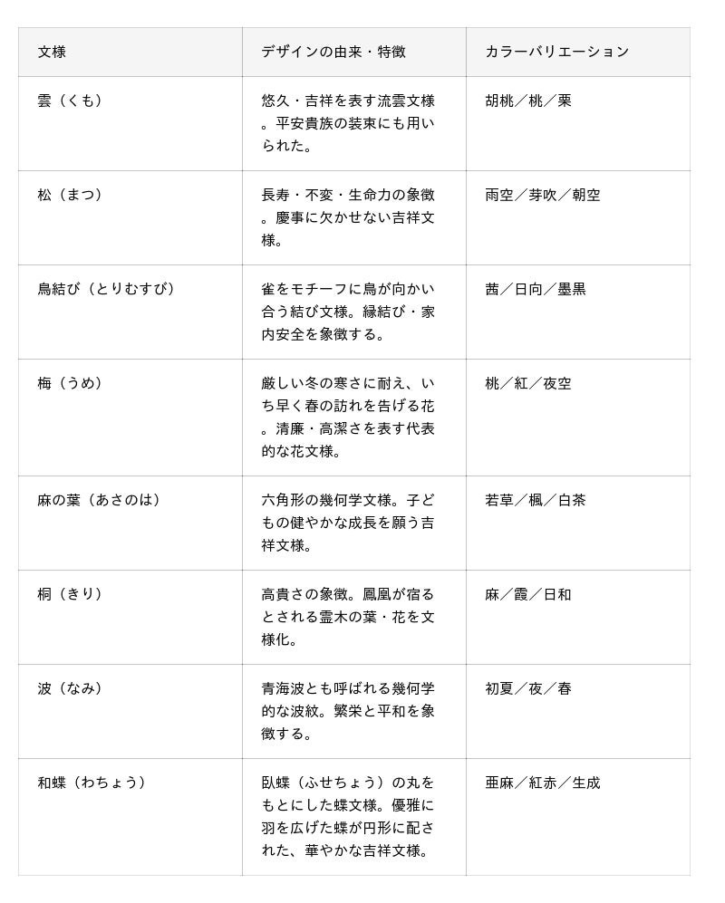 からかみコレクションデザイン数:8パターン × 3カラー展開