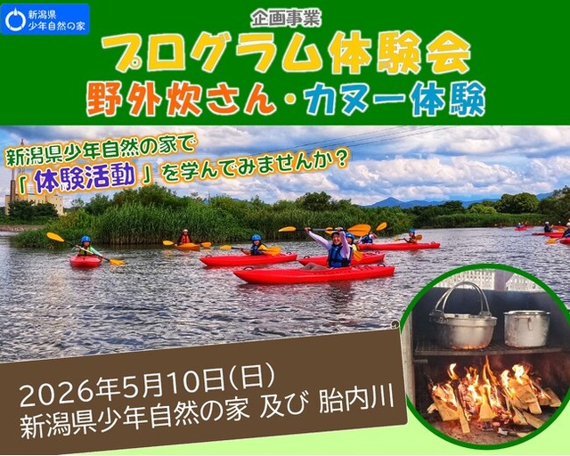 新潟県少年自然の家の主催イベント「プログラム体験会 野外炊さん・カヌー体験」では、