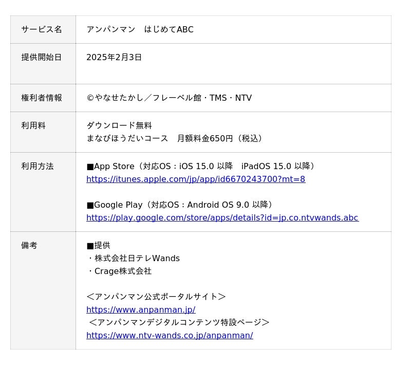 株式会社日テレWands(本社:東京都港区、代表取締役社長執行役員:角田洋子)が配信するアンパンマンの幼児向け英語アプリ「アンパンマン はじめてABC」のまなびほうだいコースに、遊びの幅が広がる新ゲームモード「ペアさがし」が登場いたしました。