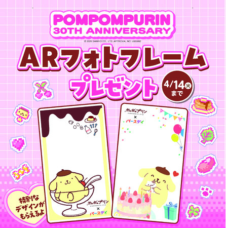 4/11(土)~4/14(火)のキャンペーン期間中、バースデイ店舗へご来店いただいたお客様に、バースデイオリジナルのポムポムプリンARフォトフレームをプレゼントします。店頭のキャンペーン販促物に記載されている二次元コードからダウンロードしてご利用いただけます。