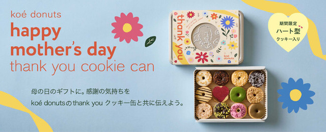 株式会社ストライプインターナショナル(本社:岡山県岡山市、代表取締役社長:川部 将士)が展開するドーナツファクトリー「koe donuts kyoto(コエ ドーナツ京都、以下koe donuts)」は、母の日ギフトにおすすめの「thank youクッキー缶」を2026年4月13日(月)より発売いたします。