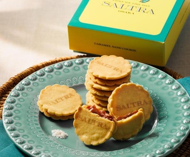 淡路島の藻塩を加えて炊き上げた自家製の塩キャラメルを、塩バタークッキーでサンド。