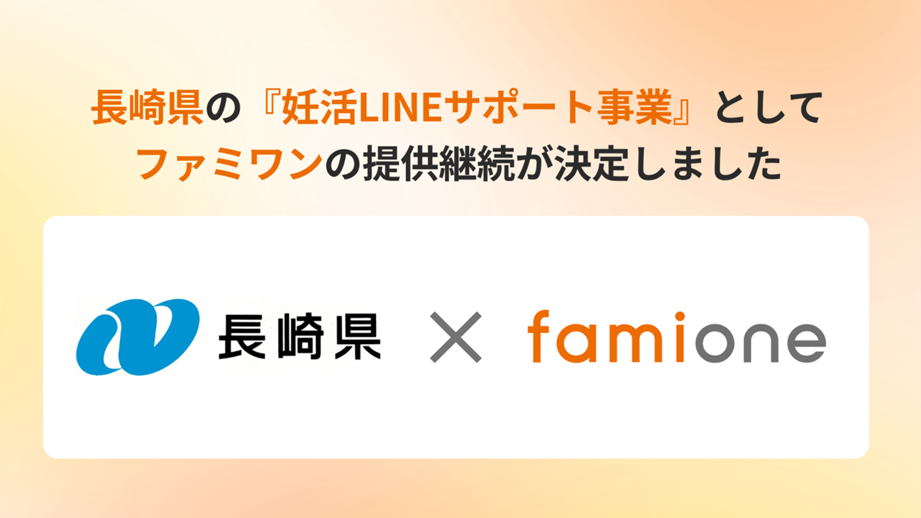 「子どもを願うすべての人によりそい 幸せな人生を歩める社会をつくる」をビジョンに掲げ、法人の従業員向け福利厚生や自治体の住民向け支援を行うヘルスケアサポートサービス「ファミワン」 https://famione.com/benefit/ などを展開する株式会社ファミワン(本社:東京都渋谷区、代表取締役:石川勇介)は、長崎県(県知事:平田 研)からの委託を受け、「妊活LINEサポート事業」において、令和8年度のサービスの提供継続が決定いたしました。