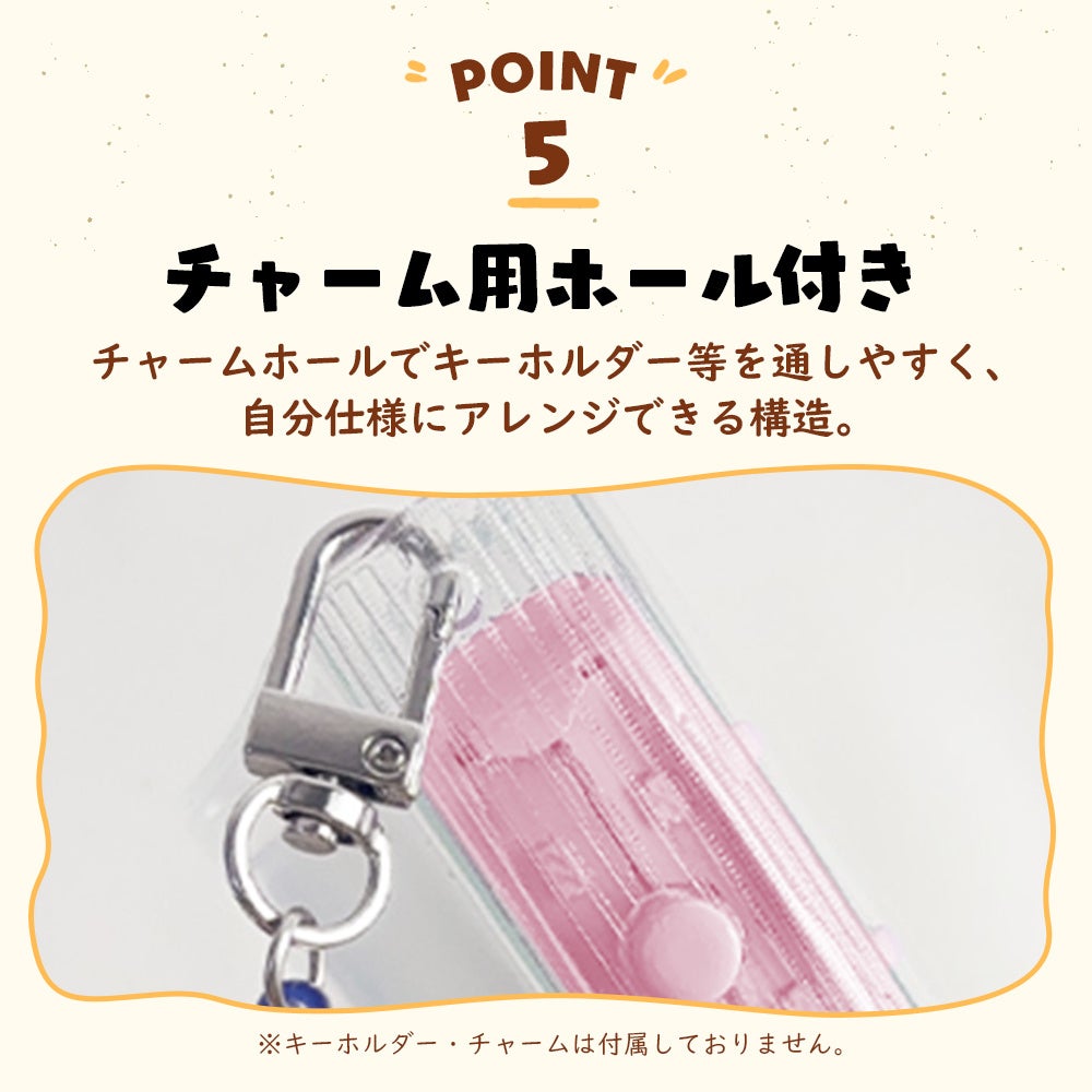 お気に入りのキーホルダーなどを取り付けてオリジナル演出も。