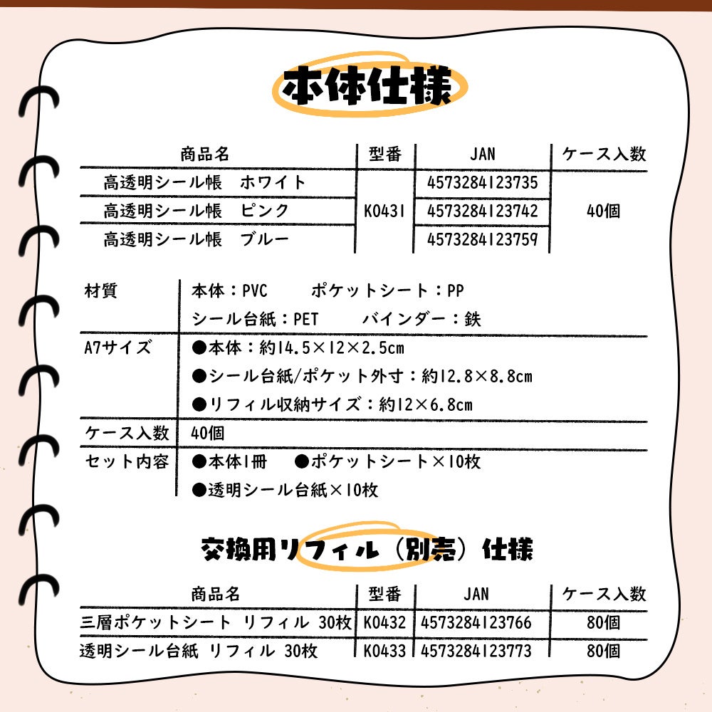 別売りでポケットシートタイプ、シール台紙タイプの2種類のリフィルもご用意しています!