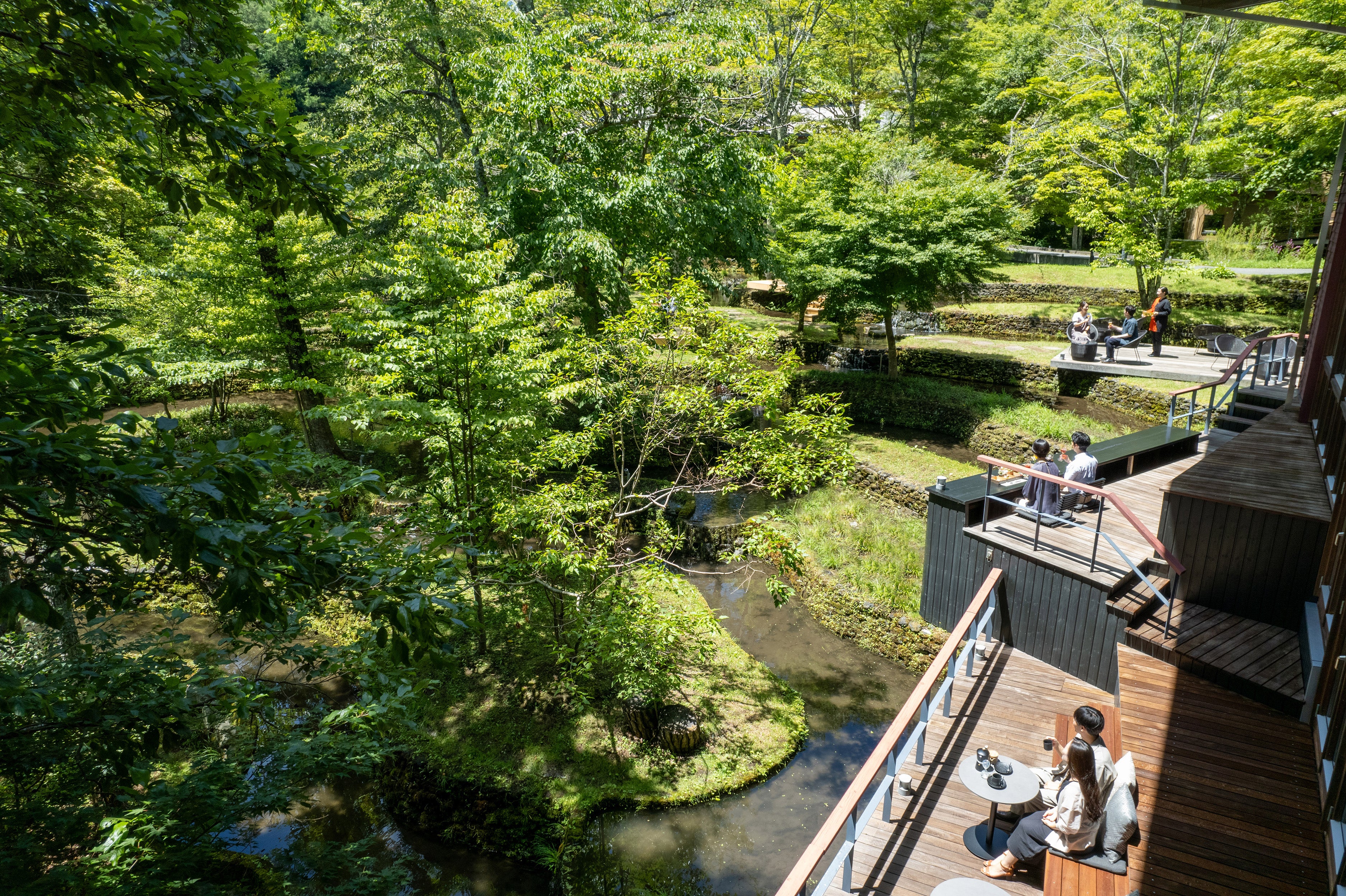 谷の集落に滞在する。離れの客室は水辺を囲み、部屋のテラスからは季節のうつろいが感じられます。「軽井沢野鳥の森」に面した豊かな自然環境にて、休息の時間を満喫できる滞在型の宿泊施設です。