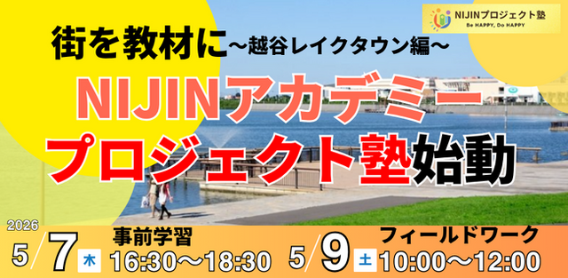 オルタナティブスクールNIJINアカデミー越谷校は、街を教材に社会とつながる探究型学習「PJ塾」を開始。第1弾は越谷レイクタウンで実施し、子どもたちが身近な街の仕組みを探究し発信する。