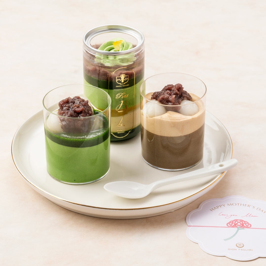 人気のお取り寄せ「Petitパフェ」に、とろっとした口あたりが特長の「白玉抹茶むうす」と「白玉ほうじ茶むうす」を詰め合わせました。濃厚な抹茶、香り高いほうじ茶の余韻を堪能する一品を、スイーツ好きなお母さまと一緒に楽しめば、特別な贈りものになること間違いなし。