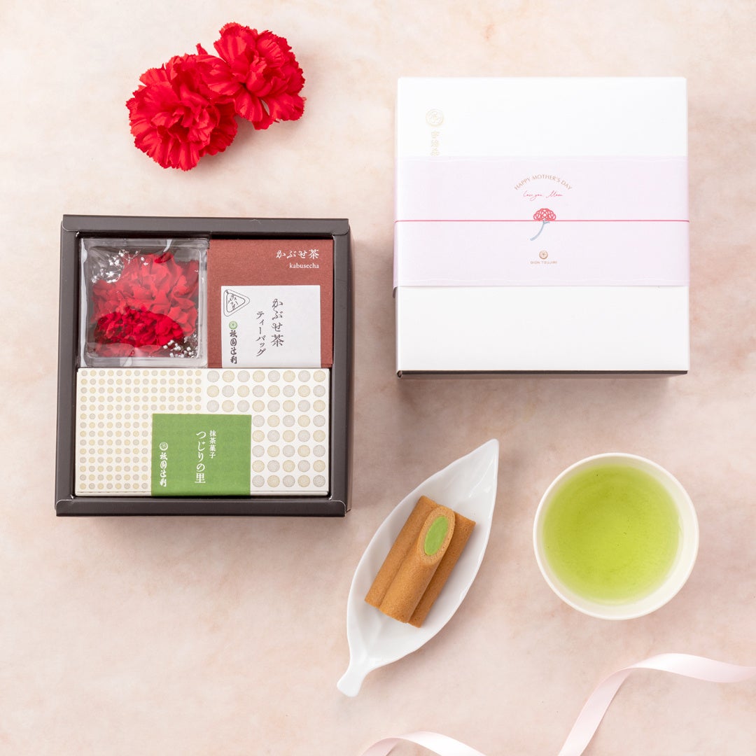 今年新たに登場するのは、日本茶専門店である祇園辻利こだわりお茶を飲み比べて楽しめる「母の日プレミアムギフトセット」。上品な巾着に、祇園辻利で人気の茶葉をメインに詰め合わせた特別なセットで、煎茶・かぶせ茶・玄米茶・ほうじ茶のティーバッグ4種に加え、ブランドNo.1の人気抹茶菓子「つじりの里」「ぎおんの里」もそれぞれ8本ずつ、お茶菓子としてお楽しみいただけます。