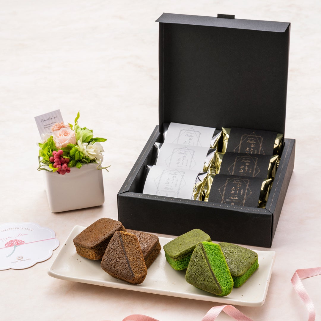 香り高い抹茶と香ばしいほうじ茶を使った和フィナンシェは大人のための味わいで、お母さま世代にもご好評をいただいています。水やり不要で長く楽しめるプリザーブドフラワーとともに、華やかさとともに感謝の気持ちをお届けします。