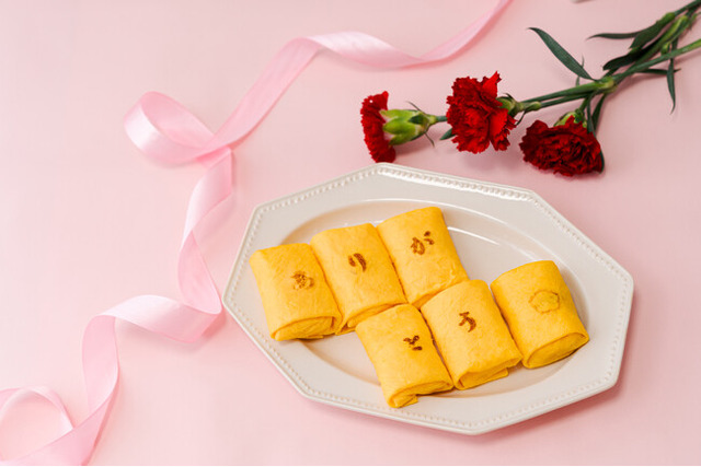 通常の焼印の代わりに「ありがとう」の焼印をあしらい、メッセージカードをつけた母の日用のあつらえで、甘いものが苦手な女性向けのギフトとしてぴったり。