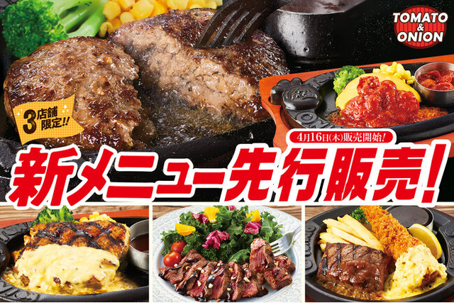 株式会社トマトアンドアソシエイツ(本社:兵庫県西宮市、代表取締役社長:笹村 啓介)が運営するアメリカンダイニングレストラン「トマト&オニオン」では、2026年4月16日(木)より、3店舗限定で新メニューを先行販売いたします。