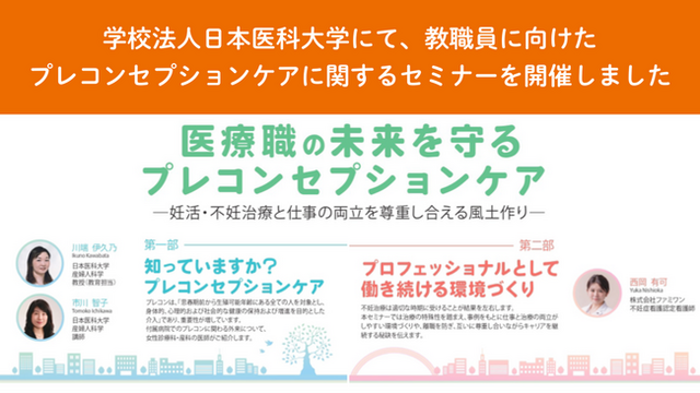 「子どもを願うすべての人によりそい 幸せな人生を歩める社会をつくる」をビジョンに掲げ、法人の従業員向け福利厚生や自治体の住民向け支援を行うヘルスケアサポートサービス「ファミワン」 https://famione.com/benefit/ などを展開する株式会社ファミワン(本社:東京都渋谷区、代表取締役:石川勇介)は、2026年3月27日(金)、学校法人日本医科大学(所在地:東京都文京区、理事長:弦間 昭彦)の教職員を対象に、オンラインセミナー「医療職の未来を守るプレコンセプションケア ―妊活・不妊治療と仕事の両立を尊重し合える風土作り―」を実施いたしました。