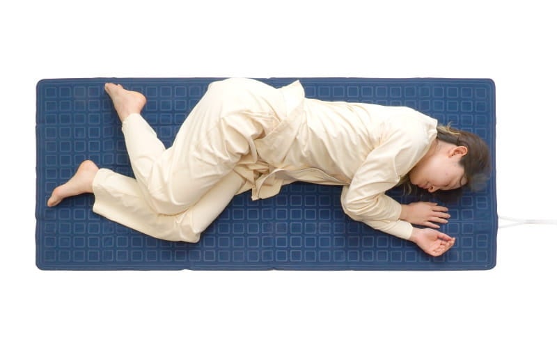 水が流れるマット(700x1600mm)をベッドや布団の上にセットし、水を循環させて冷やす水冷機(155×155×265mm)とマットを接続。