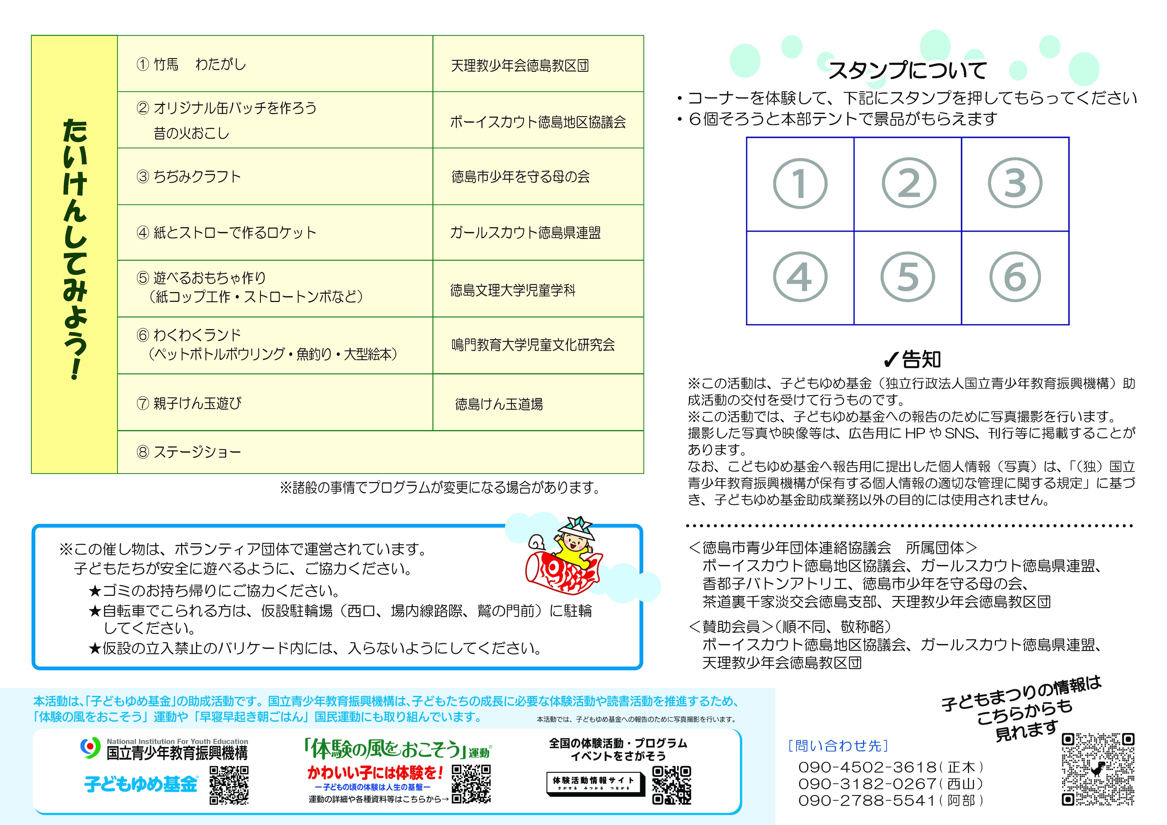 子どもまつりは、徳島市青少年団体連絡協議会が主催となり、ボランティア団体で各ブースやステージショーを設け、子どもたちと交流体験を行う場です。