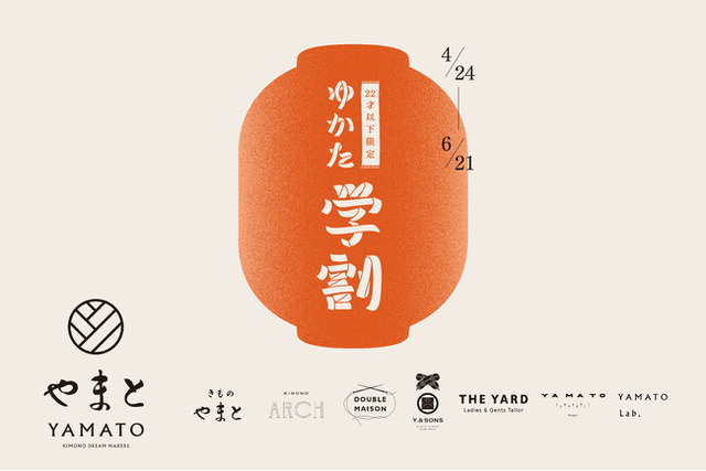 きもの専門店やまとが展開する各ブランドでは、2026年4月24日(金)より「ゆかた学割」キャンペーンを実施いたします。本キャンペーンでは、「きものやまと」「KIMONO ARCH」「Y. & SONS」「THE YARD」など、やまとの全ブランドで展開するゆかたが、新作を含めて全品20%OFFでお求めいただけます。