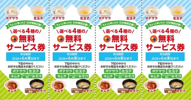 ※各店舗のサービス券在庫がなくなり次第、配布終了となります。