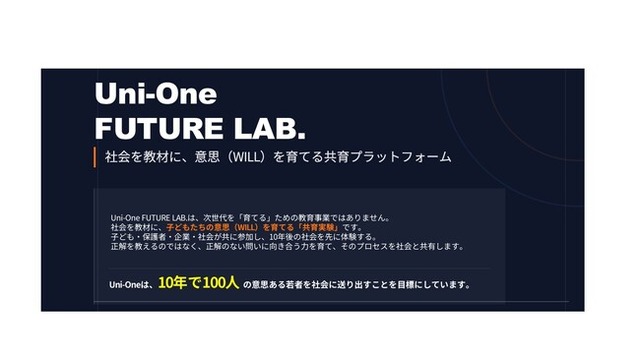 Uni-Oneは本プロジェクトを通じて、『10年で100人の意思ある若者を社会に送り出します』