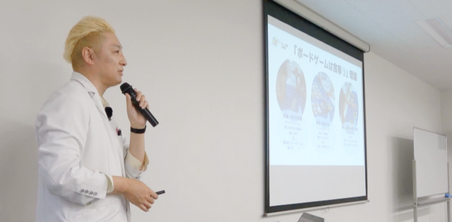 本講演では、少子化や大手塾との競争激化に直面する個人・中堅塾の生存戦略として、ボードゲームを戦略的に活用した指導法を紹介。「高い継続率」と「難関校合格」を両立させる指導メソッドを、実際の教室運営の知見を交えて発表し、次世代の学習塾モデルの可能性を提示いたしました。