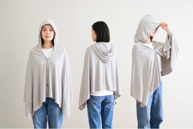 こちらもネック・ヘアバンドと同素材で、気化熱と冷感素材により心地よい冷たさを実現。UVプロテクション加工により、強い日差しから肌を守ります。150×60cmの大判サイズで肩から腕までしっかりカバーし、フード付きで頭部の紫外線対策にも対応。スナップボタンで簡単に着脱でき、アウトドアやスポーツ観戦にも適しています。さらに保冷剤ポケットを備え、より強力な冷却にも対応します。