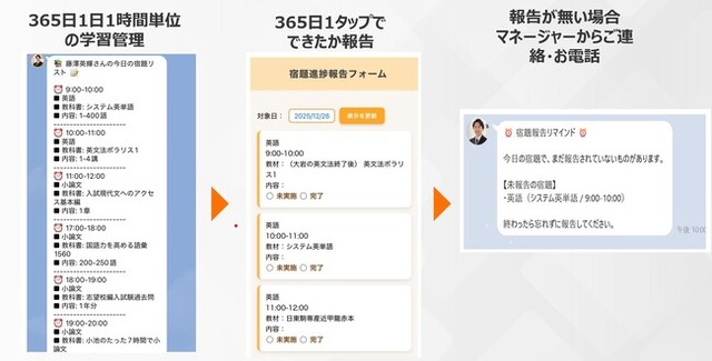 1.毎朝、学習管理マネージャーがその日の学習スケジュールを送付
