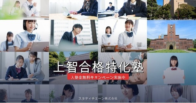 このたび上智合格特化塾(スタディチェーン株式会社)は、上智大学合格を目指すすべての受験生に向けて「入塾金無料+初月月謝半額キャンペーン」を2026年4月30日まで実施することをお知らせします。入塾金・初月月謝ともにお得な特別セットです。