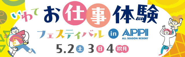 「いわてお仕事体験フェスティバル in APPI」は、安比高原(岩手県八幡平市)にて開催され、アナウンサーや警察官などのさまざまな職業を体験できる、小学生以下を対象としたイベントです。