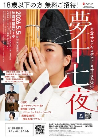 本公演は、SNSや独自の表現で注目を集めるアーティストカニササレアヤコによる待望のデビューリサイタルです。雅楽器とクラシック音楽、さらに文学と即興演奏を融合させた、ジャンルを横断する革新的なプログラムをお届けします。