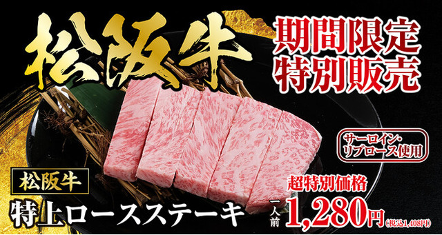 三重県内限定で販売を行い、多くのお客様からご好評をいただいた『松阪牛特上ロースステーキ』。その反響を受け、このゴールデンウィークはエリアを超えて、中部地区店舗全店での提供が決定いたしました。