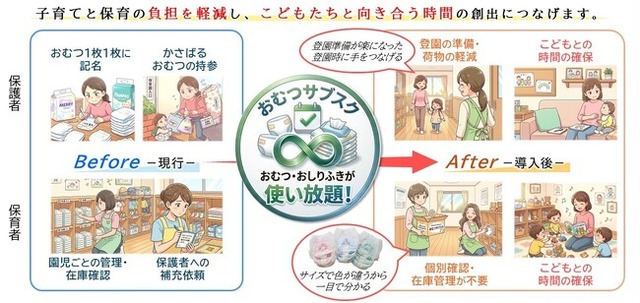 佐賀市では、県内10市で初となる取り組みとして、公立保育施設4か所で「おむつサブスク」を導入します。