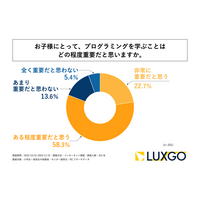小学生~高校生の保護者の8割以上が、子どもにとってプログラミングを学ぶことは程度の差こそあれ「重要」と考えている!LUXGO株式会社が「子どものプログラミング教育に関する意識調査」を実施!