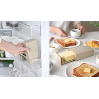冷蔵庫のドアポケットにすっぽり!“立てて”収納できる場所を取らないバターケース