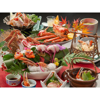 タグ付き活松葉蟹を使ったカニ料理フルコースをはじめ、2026年3月までの期間限定で、ご希望に合わせ4タイ…