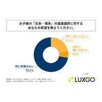 小中学生の保護者の7割以上が、子どもの「文系・理系」の進路選択に対して「特に希望はない」と回答!LUXGO株式会社が「デジタル社会における子どもの文理選択に関する保護者の意識調査」を実施!