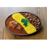 鶏だし香る水たきスープカレーと鶏むね肉のひき肉や枝豆、野菜がごろっとはいったキーマカレーの2種類が同…
