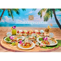 『すみっコたちと過ごす、ハワイアンバケーション!』をテーマに南国ムードあふれるコラボレーションメニューやグッズが登場! 「すみっコぐらし」がリゾート風衣装でアロハテーブルに大集合!