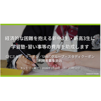 経済困窮家庭の受験生に一人あたり15~30万円分の塾代を助成。2月16日より全国10都府県で「スタディクーポン」新規利用者募集を開始