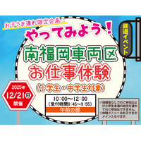 12月21日(日)開催!鉄道のお仕事を体験「やってみよう!南福岡車両区お仕事体験」参加者募集中!!