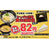 【かっぱの挑戦 歳末感謝祭】第2弾82円(税込90円)に追加「おにぎり」と「うどん」も各82円(税込各90円…