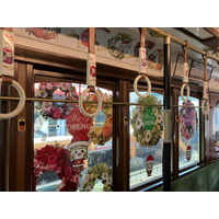 日比谷花壇が東京さくらトラム(都電荒川線)の「都電クリスマス号」を装飾。ホワイトクリスマスを想わせる、「とあらん」とクリスマスリースによる色彩豊かなフラワーグラフィックで華やかに彩ります!