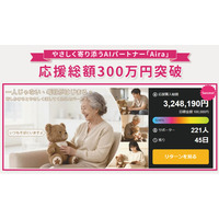 AIくま「Aira」、Makuakeで応援総額300万円突破。忙しい毎日に寄り添う“話し相手AI”として人気拡大