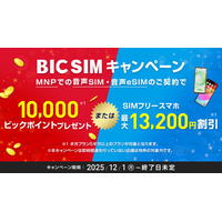 【12月1日から】ビックカメラ店頭申込みならスマホ最大13,200円割引、月額料金は900円~に!「端末購入」も「毎月のスマホ代」もダブルでお得なBIC SIMキャンペーン