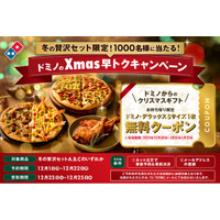 ドミノ・ピザ、早めの予約でピザ無料クーポンが当たる! 「ドミノのXmas早トクキャンペーン」12月1日(月)~12月22日(月)期間限定開催!「冬の贅沢セット」を予約するなら今!