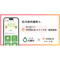 ミラボ、石川県 内灘町で 母子手帳アプリ「mila-e おやこ手帳」提供開始