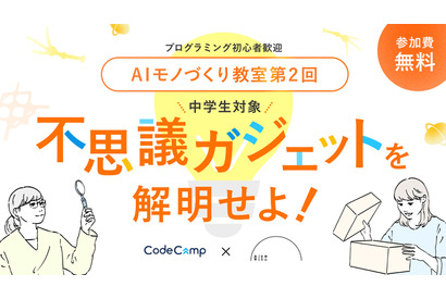 コードキャンプと神山まるごと高専が共同開催する中学生向け「AIモノづくり教室」が2025年6月14日、コードキャンプCREATIVE GARDEN(東京都品川区)にて開催される。申込みは5月28日午後5時まで。