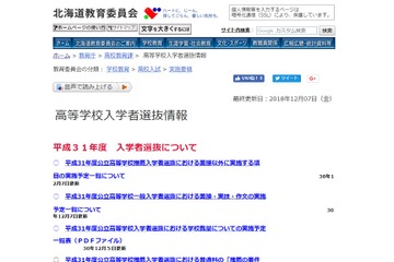 【高校受験2026】北海道公立高入試、手引を公表…オンライン出願入力12/5より