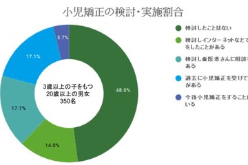子どもの歯列矯正、52%が検討…費用は50万円未満が63%