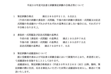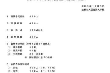 法務省は2025年12月18日、司法試験予備試験論文式試験の結果を公表した。受験者2,620人のうち合格者は457人。合格点は240点以上で、最高点は343.17点だった。法務省のWebサイトでは試験地別に合格者の受験番号を発表している。