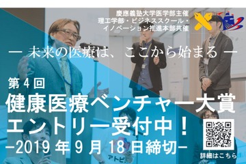慶應義塾大学医学部は、「病院での医療に限局せず、医療・健康に貢献するプラン」をテーマとしたコンテスト「健康医療ベンチャー大賞」の開催にあたり、ビジネスモデルを募集する。決勝大会は2019年12月8日。申込みは9月18日まで。